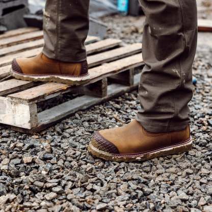 The Bolduc 9” BRUNT Toe™ Waterproof (Comp Toe) features an exterior toe cap and heel guard that are stitched into the boot to protect high-wear areas from breaking down. A favorite among plumbers, welders, and truck drivers, this 9” slip-on boot is fully waterproof and features our BRUNT FARMGUARD™ leather to repel water, mud, oil, piss, and sh*t. Built with a nano composite safety toe and an innovative slip-, oil-, and high-heat-resistant rubber outsole, the Bolduc BRUNT Toe can tackle whatever the job throws your way.