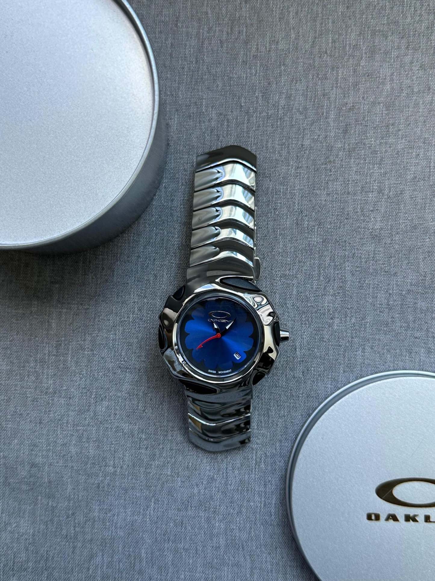 This version with the blue dial is especially sought-after by Oakley collectors. Perfect for anyone who appreciates unique design and Swiss craftsmanship.